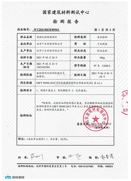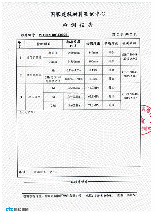 豆石型灌漿料檢驗(yàn)報(bào)告